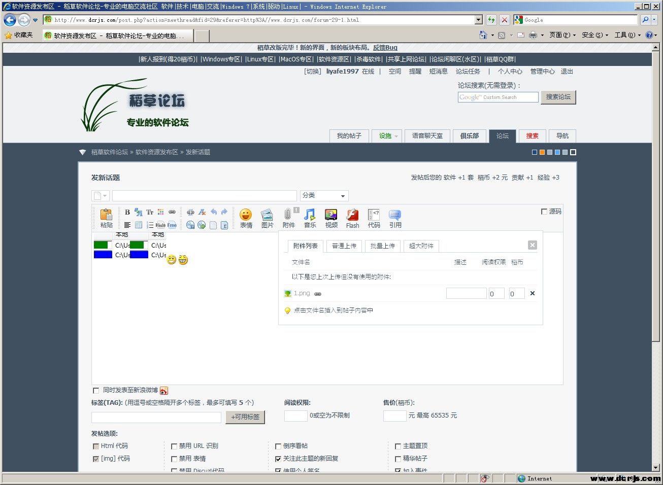 原来在IE下发帖插入附件或表情等时会出错,现在已修复这个问题。。