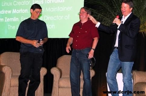 Jim 开场就问:不知道Linus和Andrew有没有想过Linux发展到今天会变得这么大?Linus的回答是没有;他说当初他写Linux只 是当 作一个短期的项目,并随时准备用更好的来替代的。因为当时还有GNU项目和很出色的BSD阵营,他认为一定会有其他人做出更强大更专业的内核来。同时,当 时他只是将Linux当做自己的一个小爱好而已。这时Andrew风趣的补充道:“但是,最后证明,没有人做的比Linux更好。我作为一个内核菜鸟(谦 虚的说法,事实上Andrew在这领域至少有10年了),虽然没有很长远的眼光,但是,我个人觉得Linux的发展确实很惊人。”