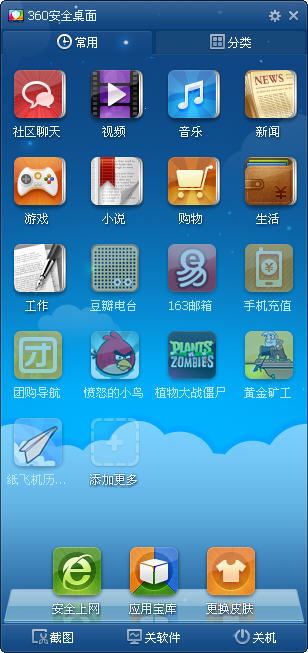 软件名称:360安全桌面 V2.2.0.1031 官方最新版 软件大小: 18.1M 软件分类: 360工具 软件语言: 中文 运行环镜: WinXP, WinAll 软件介绍: 360安全桌面是一款强大的桌面应用管理软件,帮你更好的整理自己的电脑桌面文档及设置。万众瞩目的360安全桌面全屏版登场了,只需点击主界面上的“进入全屏”,即可轻松切换到全屏模式,与壁纸完美的结合在一起。更新日志:360安全桌面2.2Beta4尝鲜版(2.2.0.1031;更新日期:2012-5-31)1、修复壁纸轮播时的bug;360安全桌面2.2Beta4尝鲜版(2.2.0.1030;更新日期: 下载页面: http://www.cr173.com/soft/23164.html 360安全桌面 V2.2.0.1031 官方最新版 360安全桌面 V2.2.0.1031 官方最新版 迅雷下载
