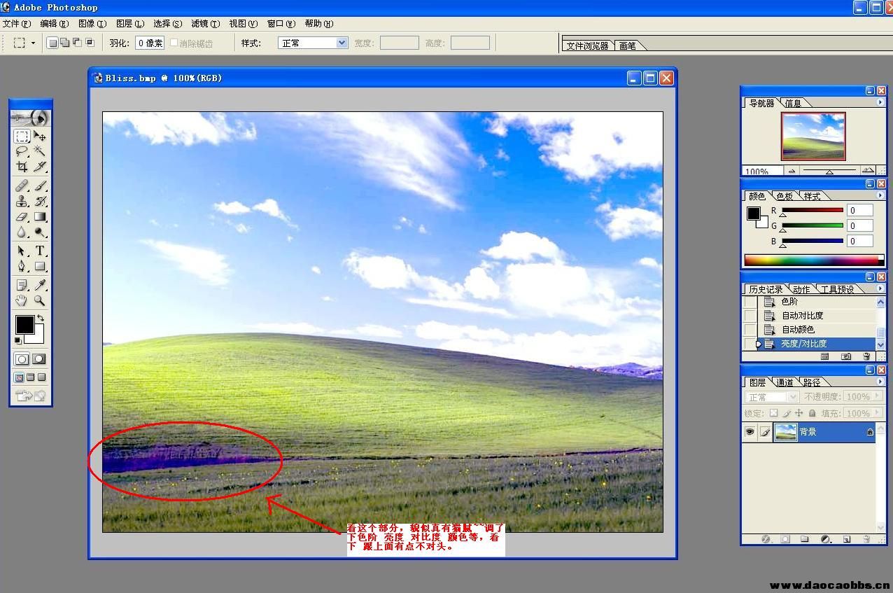 天,周末,早上,由于昨晚染病毒,我把C盘格了,从新装的系统是winXP V8 版的,一切顺利,然后装常用软件3dsmax7.0 Photoshop7.0 迅雷 P2p终结者 等!累了!我起身活动活动! 在屏幕大概两米远的地方,无意间扫了一眼显示器屏幕! --------忽然我发现作为桌面XP默认的蓝天白云草地那张图片有什么地方不对劲---------!! 再仔细观察一下! 是的!就在左下方,有一道深颜色的色带好像是一道沟,不! 我不是说那道沟,你注意到紧贴着沟的上方草地了吗! 很不自然的,隐隐约约的好像有什么东西!但就是看不清! 我敢肯定那地方绝对被人修改过,一定存在这什么东西! 因为我以前也曾经在自己的作品中加入隐藏的一些东西,如自己的名字等,但这里面到底有什么呢??? 勾起了我的好奇心,打开Photoshop打开C:\WINDOWS\Web\Wallpaper\Bliss.bmp(Bliss.bmp就是那张图片!) 放大神秘的地方--还是看不清! --一定有什么方法能够让它显示出来!调色相!饱和度!去色等,当我调高对比度的时候,神奇的事情发生了!! 再调高对比度!!! -----当其他地方都因为调高对比而变成白色的时候,一行清晰的英文出现在电脑屏幕上,天哪!这是真的吗!如果他说的是真的!!! 那后果那可是这个世纪初最大的秘密了!!后果太可怕了! 我再次认真的看了下,还特意把眼镜带上看了下,天呀!上面模模糊湖有几个英文字母字样........................ "WHG KILL ME" "WHG"到底是什么了?我想了下,WINDOWSXP是微软出的,天呀~~~难道是"盖茨" "盖茨"的全名不是"William Henry Gates" 啊~!真的啊,是他名字的前3个字母,真不可思意......难道隐藏着一件惊天巨案 跟微软有关 . 难道是"盖茨"杀了一个神秘的人,这个人到底是谁啊? 我也不知道....... 希望大家能帮助我想下,这个人会是谁? 若大家都有photoshop的话,可以去试下,看那些字......... 引用的文章出自http://www.19lou.com/forum-269-thread-13911285-1-84.html