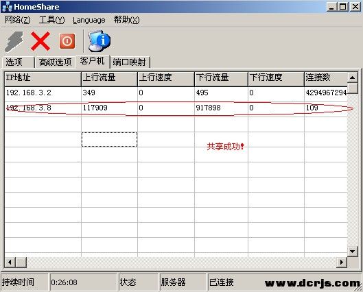 共享成功,我3台机一起上,一台主机,两台分机。